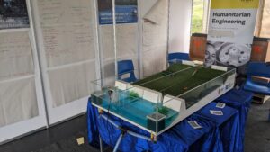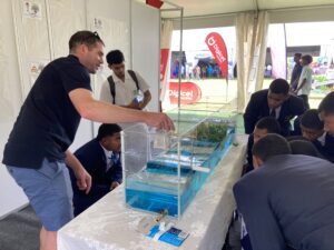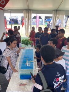 At the Project Halo booth, Dr. Laura Montano and Dr. Brad Henderson from UNSW led interactive demonstrations using two custom built models illustrating mangrove ecosystems services and tidal restoration practices. These models designed by Dr. Montano and Dr. Henderson and built by the UNSW Water Research Laboratory (WRL) workshop team, helped students visualize how mangroves contribute to climate adaptation and coastal protection.